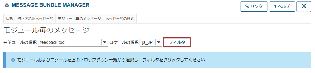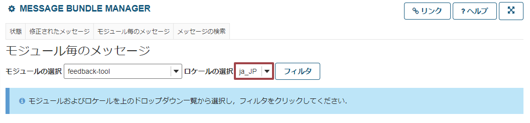 Administration WorkspaceのツールメニューからMessage Bundle Manager ツールをクリックします。